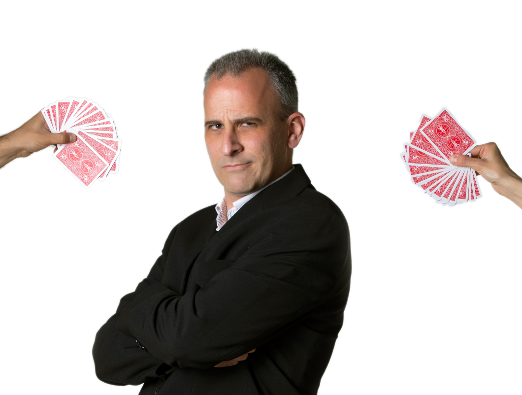 Allá dónde voy, llevo el asombro y la sorpresa directamente a tu evento. ¿En qué se diferencia de un show de escenario? En que este espectáculo lo realizo a pocos centímetros de los ojos de los espectadores, con efectos que utilizan objetos tan cotidianos como una baraja de cartas o monedas.